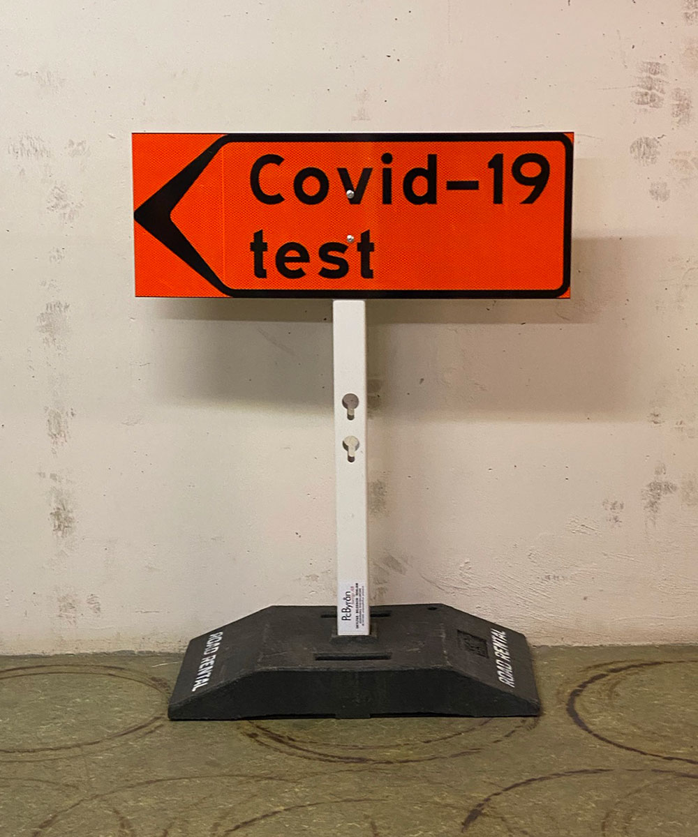 Vägskylt för Covid 19 teststation