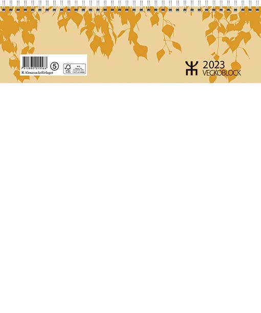 Praktisk skrivbordskalender från Almanacksförlaget i liggande format med spiral i överkant.